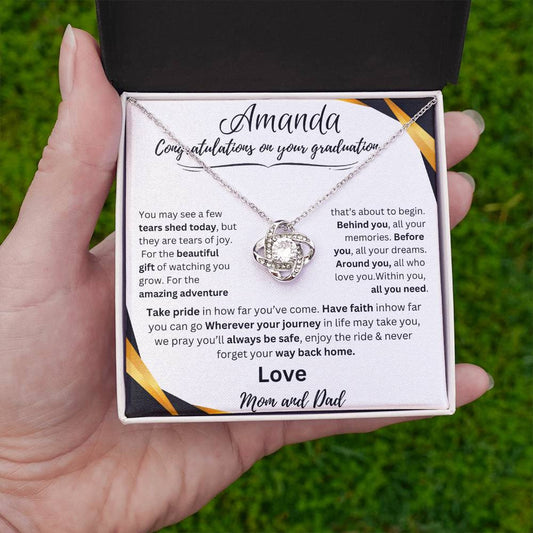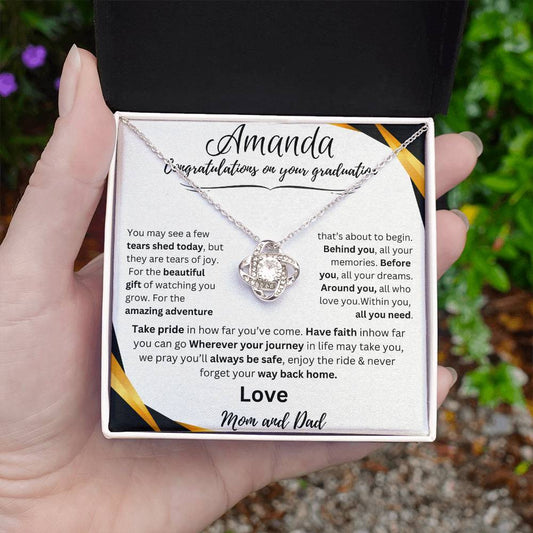 Personalized Graduate Love Knot Necklace |"Take Pride In How Far You’ve Come"