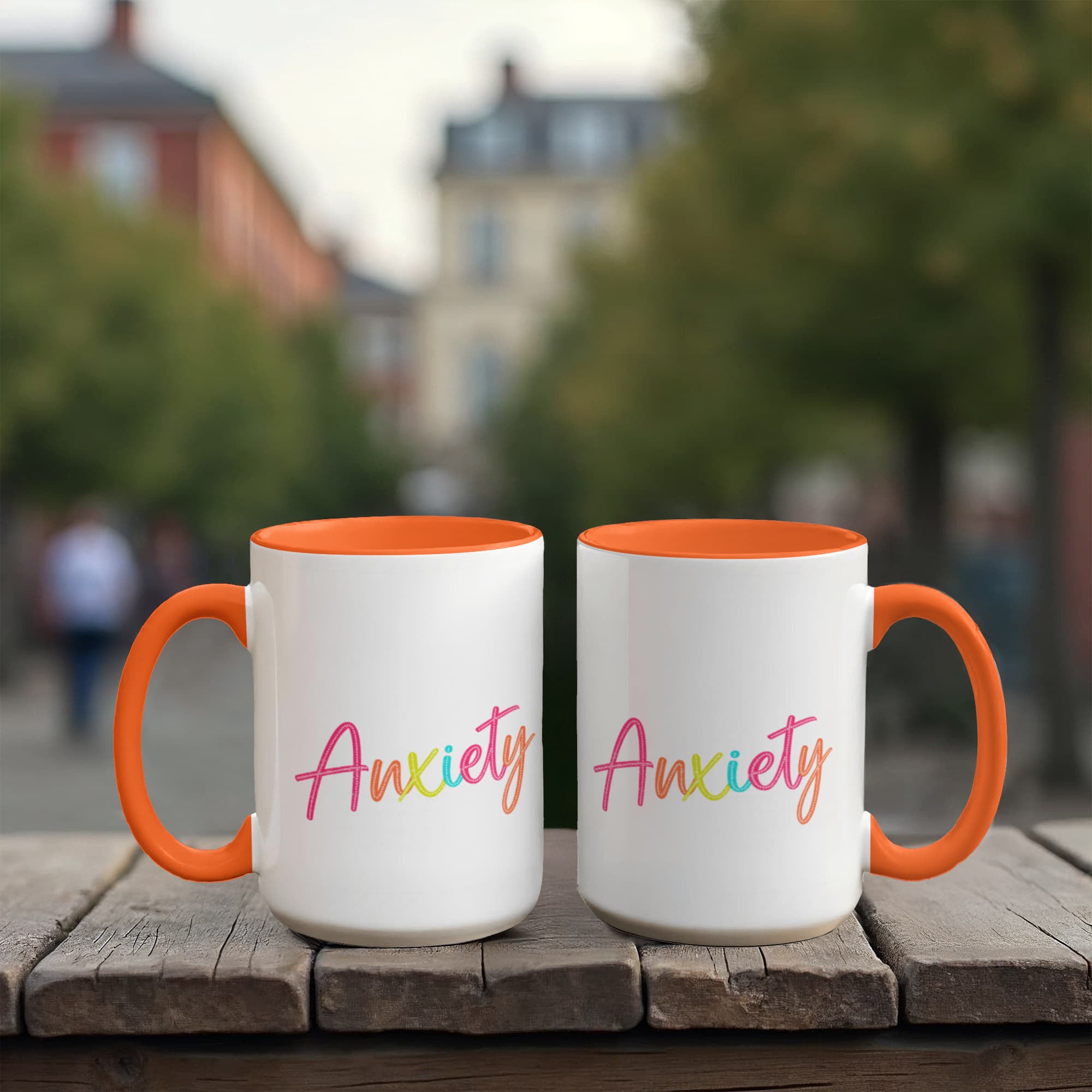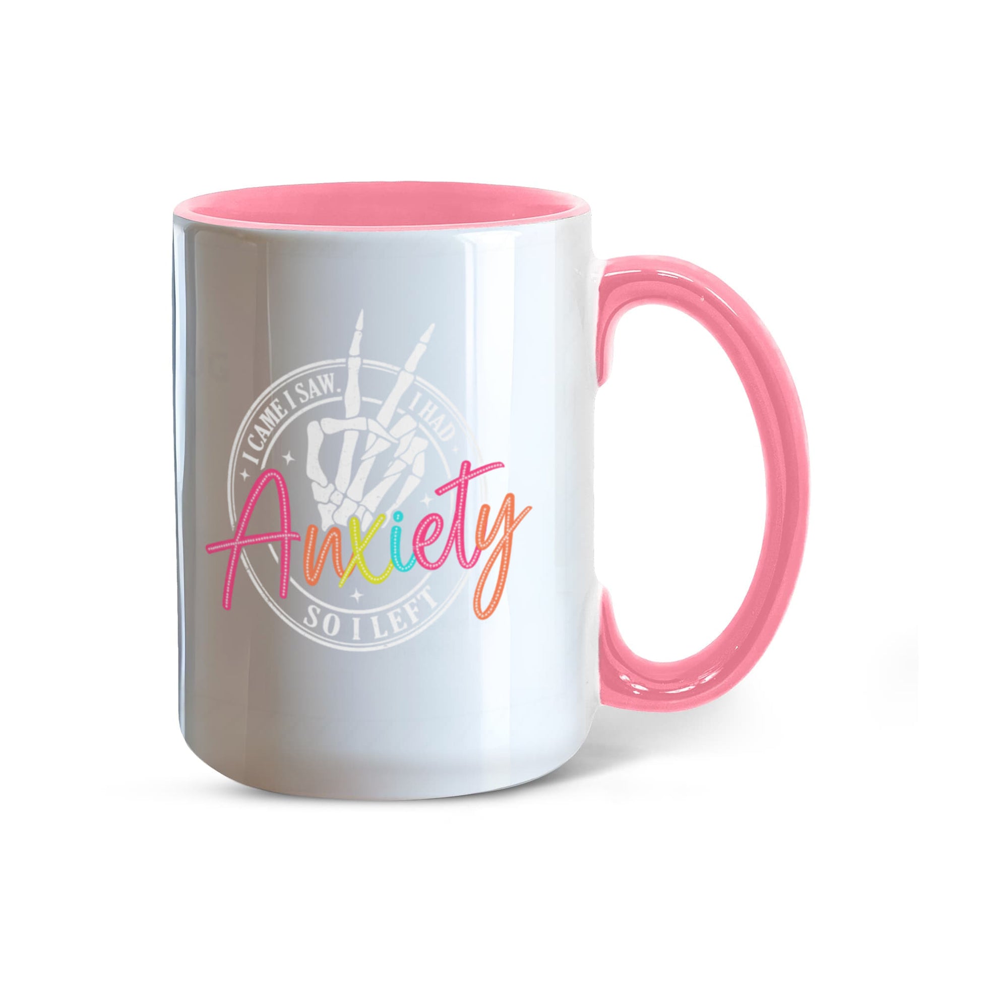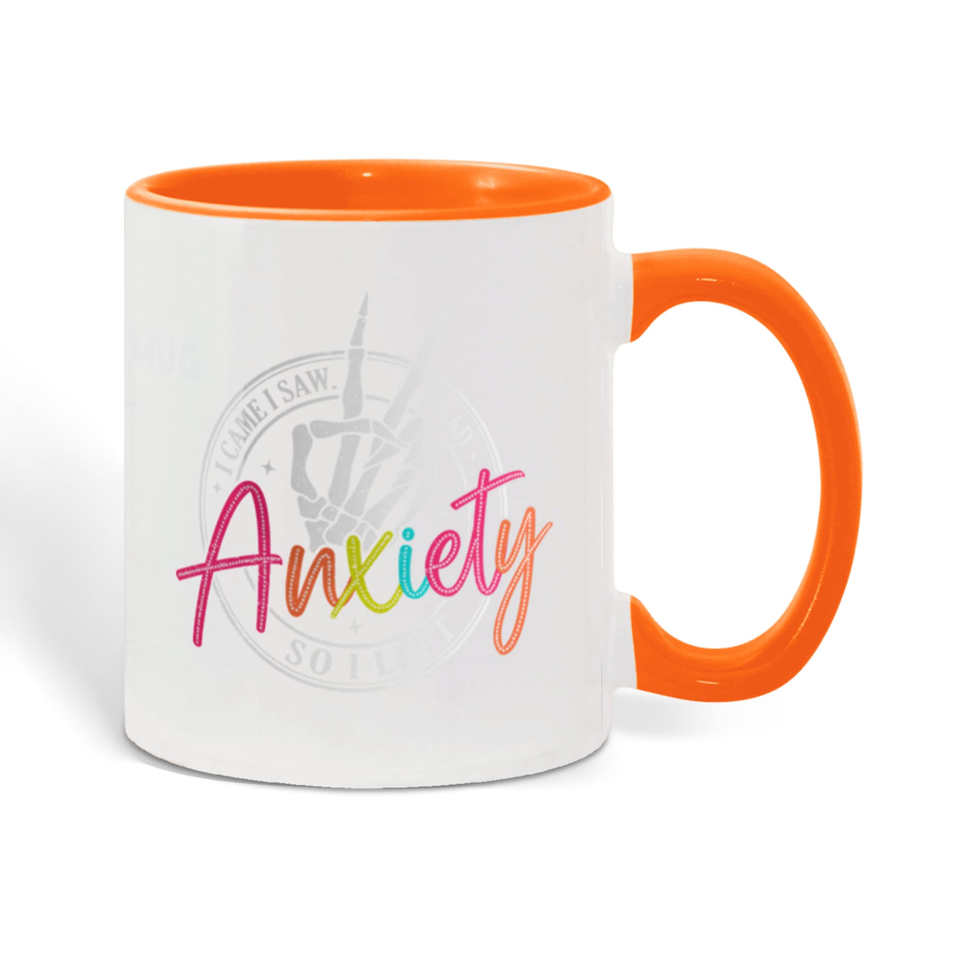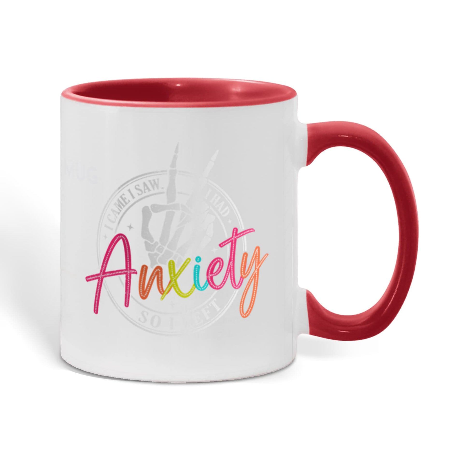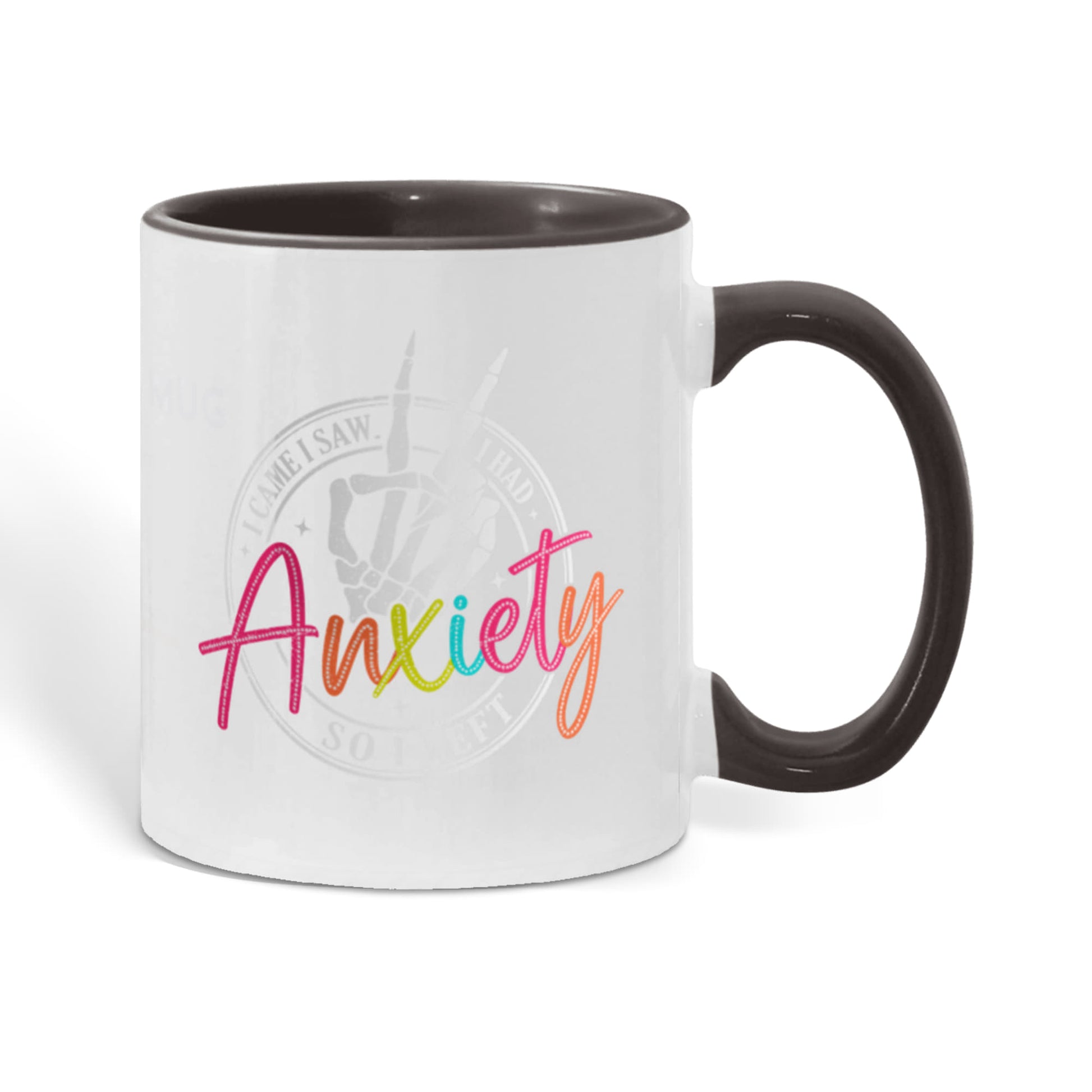 - High quality ceramic mug with two-tone rim, interior, & handle